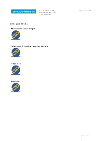 p. + s. christen ag 052 355 15 15 Bietenholzstrasse 32 8307 Effretikon Links zum Thema Mechanische Gefährdungen Schweissen, Schneiden, Löten und Wärmen Tafelschere Bandsäge 38 von 73