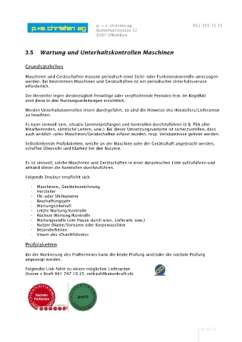 3.5 Wartung und Unterhaltskontrollen Maschinen