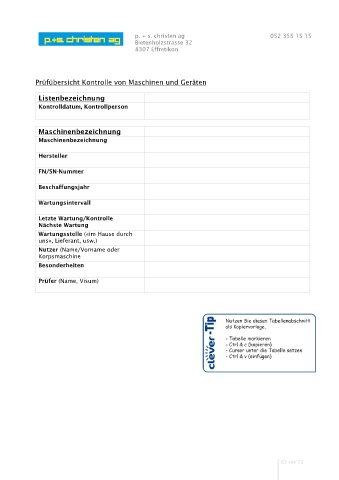 Prüfübersicht Kontrolle von Maschinen und Geräten