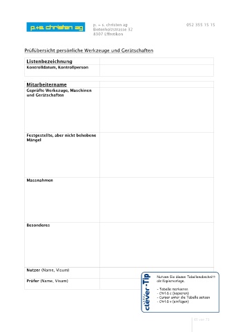 Prüfübersicht persönliche Werkzeuge und Gerätschaften