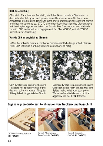 gehärtetem Stahl eignet. Beim Schleifen mit Diamantscheiben entsteht Wärme