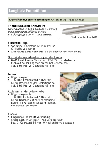 Anschliffarten/Schleifeinstellungen Anschliff 35°-Fasenwinkel
