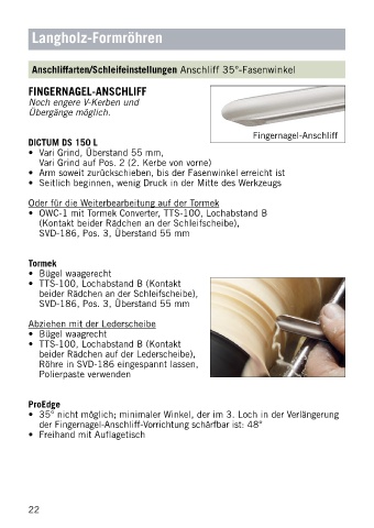 Anschliffarten/Schleifeinstellungen Anschliff 35°-Fasenwinkel