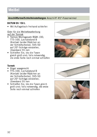 Anschliffarten/Schleifeinstellungen Anschliff 45°-Fasenwinkel