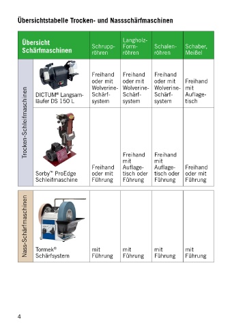 Übersichtstabelle Trocken- und Nassschärfmaschinen