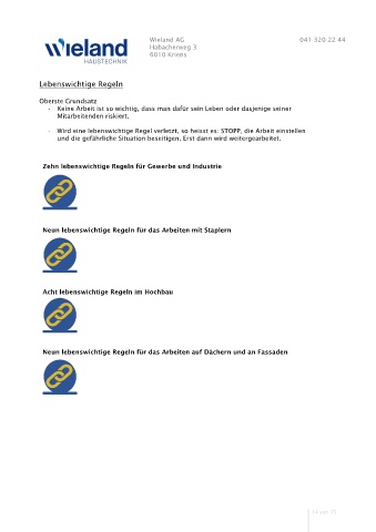 - Wird eine lebenswichtige Regel verletzt, so heisst es: STOPP, die Arbeit einstellen