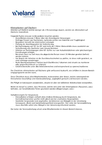 Arbeiten auf Dächern welche weniger als 2 Personentage dauern, werden als «Kleinarbeit auf