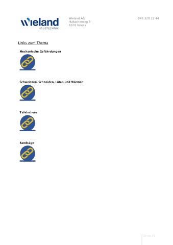 Wieland AG 041 320 22 44 Habacherweg 3 6010 Kriens Links zum Thema Mechanische Gefährdungen Schweissen, Schneiden, Löten und Wärmen Tafelschere Bandsäge 39 von 75