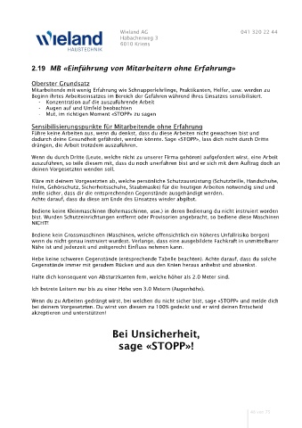 Wenn du zu Arbeiten gedrängt wirst, bei welchen du nicht sicher bist, sage «STOPP» und melde dich