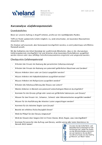Gefahrenpotenzial» durchgeführt hat und Arbeiten ohne besondere Risikofaktoren ausgeführt