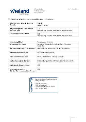 laufende Jahr Empfehlung, minimal 3 definierte, messbare Ziele.
