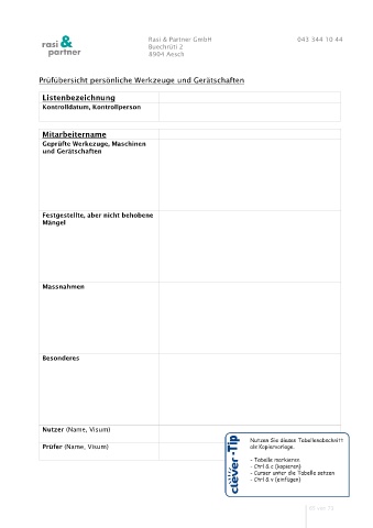 Prüfübersicht persönliche Werkzeuge und Gerätschaften