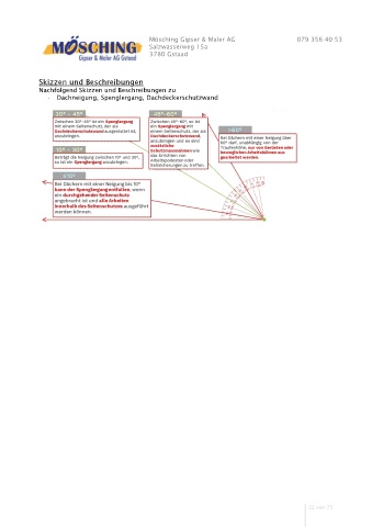 Mösching Gipser & Maler AG 079 356 40 53 Salzwasserweg 15a 3780 Gstaad Skizzen und Beschreibungen Nachfolgend Skizzen und Beschreibungen zu - Dachneigung, Spenglergang, Dachdeckerschutzwand 22 von 75