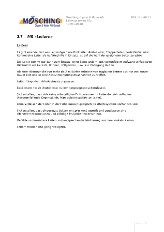 Dauer sein und es sind Absturzsicherungsmassnahmen zu treffen.