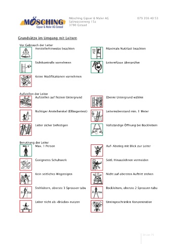 Stehleitern, oberste 3 Sprossen tabu Bockleitern, oberste 2 Sprossen tabu
