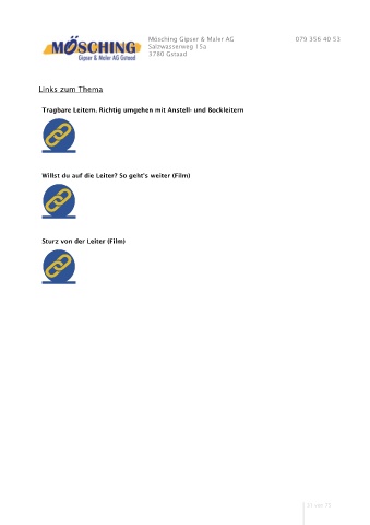 Mösching Gipser & Maler AG 079 356 40 53 Salzwasserweg 15a 3780 Gstaad Links zum Thema Tragbare Leitern. Richtig umgehen mit Anstell- und Bockleitern Willst du auf die Leiter? So geht’s weiter (Film) Sturz von der Leiter (Film) 31 von 75