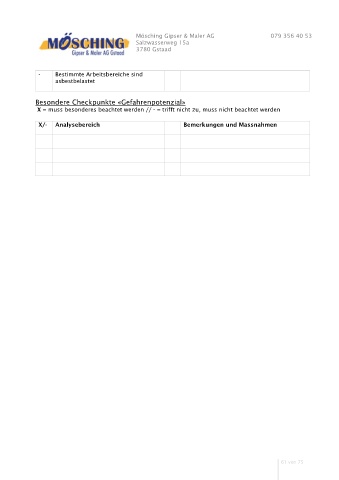 Besondere Checkpunkte «Gefahrenpotenzial»
