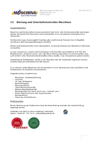 3.5 Wartung und Unterhaltskontrollen Maschinen