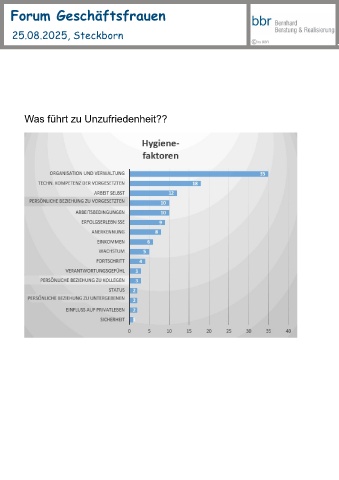 Forum Geschäftsfrauen 25.08.2025, Steckborn by BBR Was führt zu Unzufriedenheit??