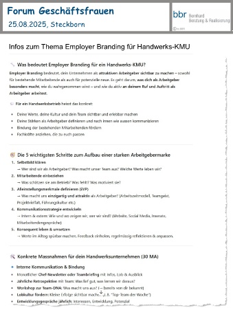 Forum Geschäftsfrauen 25.08.2025, Steckborn by BBR Infos zum Thema Employer Branding für Handwerks-KMU
