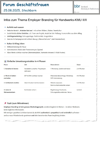 Forum Geschäftsfrauen 25.08.2025, Steckborn by BBR Infos zum Thema Employer Branding für Handwerks-KMU II/II