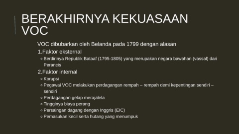 VOC dibubarkan oleh Belanda pada 1799 dengan alasan
