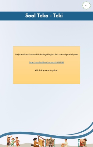 41 Kerjakanlah soal teka-teki ini sebagai bagian dari evaluasi pembelajaran https://wordwall.net/resource/86393981 Klik linknya dan kerjakan!