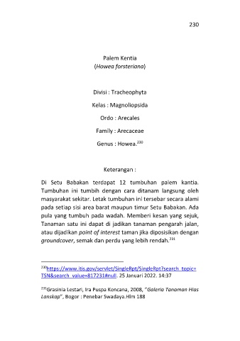 Di Setu Babakan terdapat 12 tumbuhan palem kantia.
