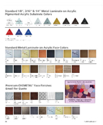 Standard 1/8”, 3/16” & 1/4” Metal Laminate on Acrylic Pigmented Acrylic Substrate Colors