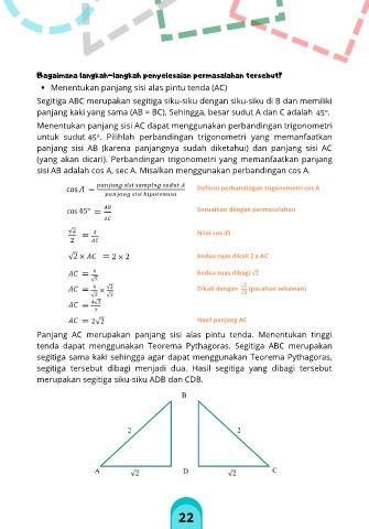 tenda dapat menggunakan Teorema Pythagoras. Segitiga ABC merupakan