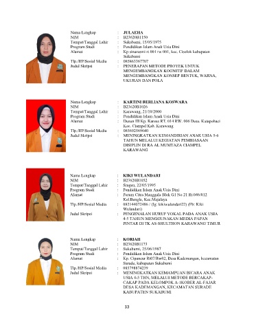Program Studi : Pendidikan Islam Anak Usia Dini