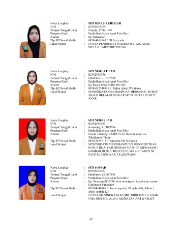 Program Studi : Pendidikan Islam Anak Usia Dini