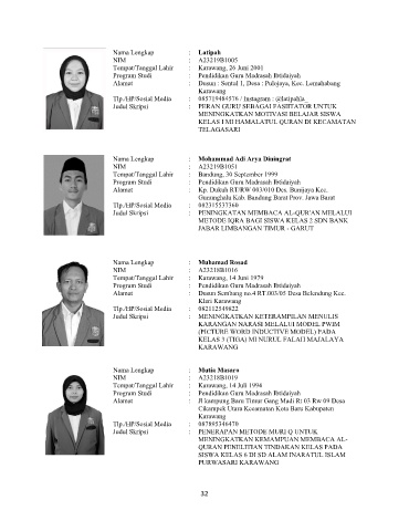 Program Studi : Pendidikan Guru Madrasah Ibtidaiyah