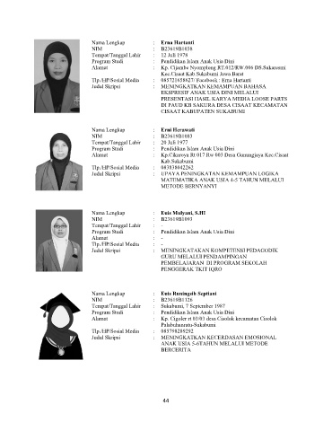 Program Studi : Pendidikan Islam Anak Usia Dini