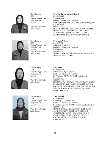 Program Studi : Pendidikan Islam Anak Usia Dini