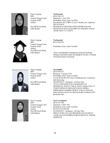 Program Studi : Pendidikan Islam Anak Usia Dini