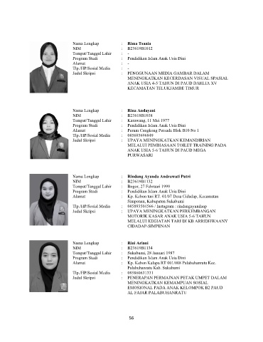 Program Studi : Pendidikan Islam Anak Usia Dini
