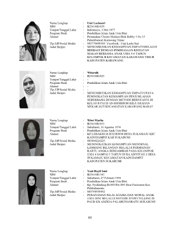Program Studi : Pendidikan Islam Anak Usia Dini