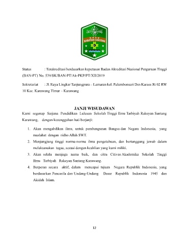Status : Terakreditasi berdasarkan keputusan Badan Akreditasi Nasional Perguruan Tinggi