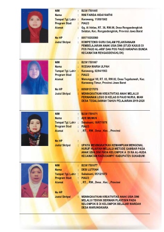 Judul Skripsi   :  MENINGKATKAN KREATIVITAS ANAK USIA DINI