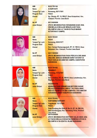 Judul Skripsi : UPAYA MENINGKATKAN MOTORIK HALUS ANAK USIA
