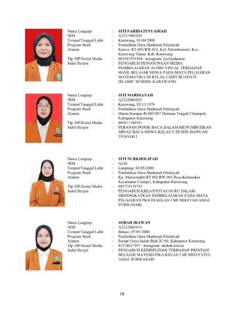 Program Studi : Pendidikan Guru Madrasah Ibtidaiyah