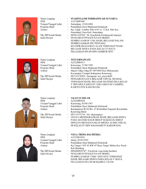 Program Studi : Pendidikan Guru Madrasah Ibtidaiyah