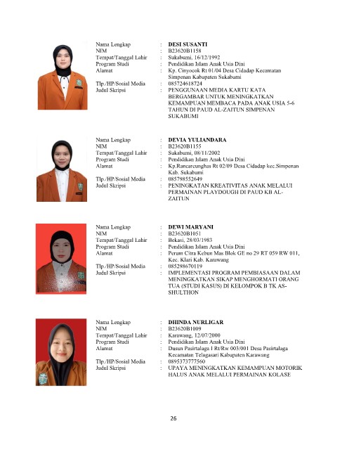 Program Studi : Pendidikan Islam Anak Usia Dini