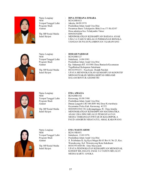 Program Studi : Pendidikan Islam Anak Usia Dini