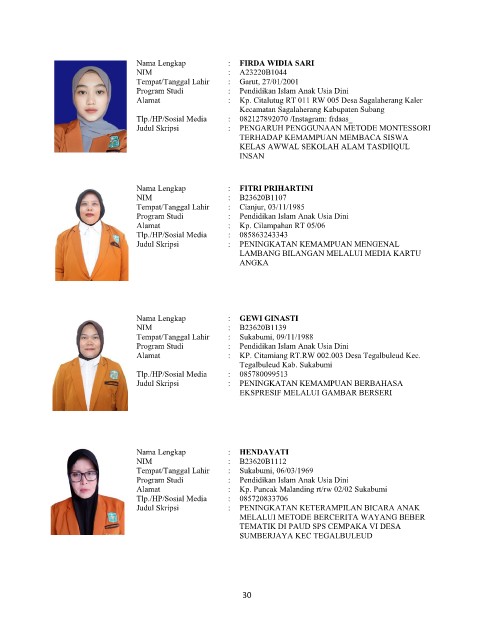 Program Studi : Pendidikan Islam Anak Usia Dini