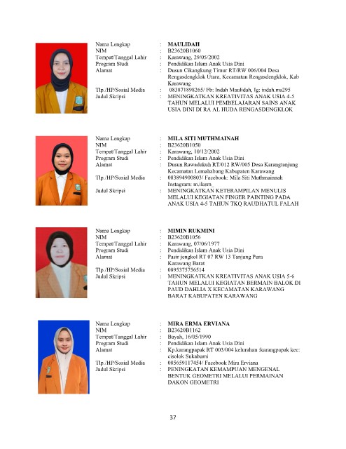 Program Studi : Pendidikan Islam Anak Usia Dini