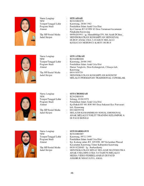 Program Studi : Pendidikan Islam Anak Usia Dini
