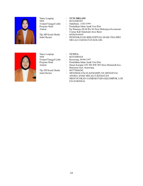 Nama Lengkap : YUNITA