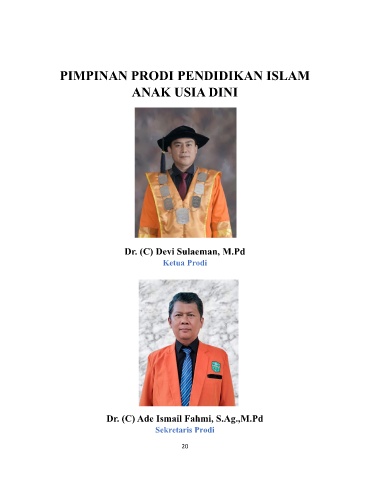 PIMPINAN PRODI PENDIDIKAN ISLAM ANAK USIA DINI Dr. (C) Devi Sulaeman, M.Pd Ketua Prodi Dr. (C) Ade Ismail Fahmi, S.Ag.,M.Pd Sekretaris Prodi 20
